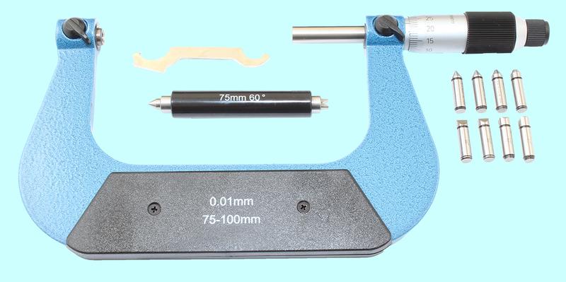 Микрометр Резьбовой со вставками МВМ-100, 75-100 мм (4 пары вставок) "TLX"