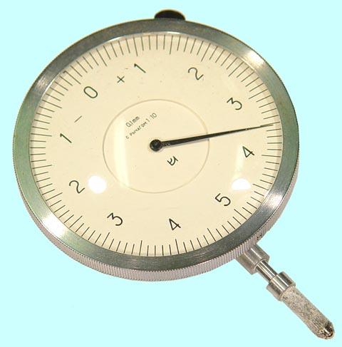 ГОСТ 5584-75 Цена деления 0.01 мм. Предназначены для абсолютных и относительных измерений линейных размеров, контроля отклонений от заданной геометрической формы и взаимного расположения поверхностей. Индикаторы с диапазоном измерения 0 - 2 мм выпускаются в двух исполнениях: ИЧ - с перемещением измерительного стержня параллельно шкале; ИТ - с перемещением измерительного стержня перпендикулярно шкале. Крепят индикаторы либо за присоединительную гильзу диаметром 8h7, либо за ушко толщиной 5 мм с присоединительным отверстием диаметром 5 мм. Наличие поворотного измерительного рычага, малые габариты и незначительное измерительное усилие позволяют использовать прибор в трудно доступных местах, а также в случаях требующих малого измерительного усилия.