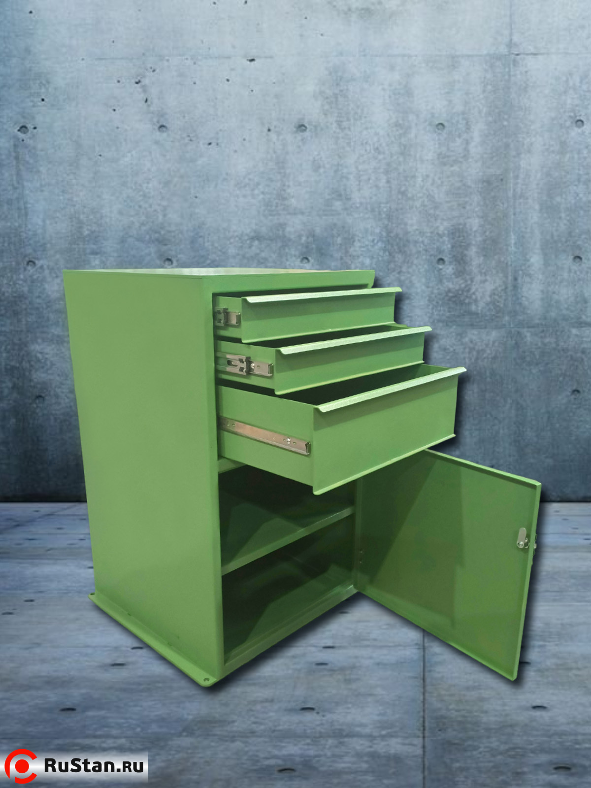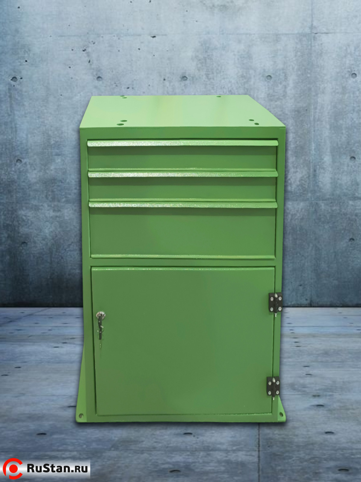 Тумба (подставка) Т2 предназначена для установки настольных сверлильных станков и настольных сверлильно-фрезерных станков производства ООО "УЗС", а также других производителей. Для крепежа станков производства ООО "УЗС" на столешнице уже предусмотрены крепежные отверстия. В основании есть четыре отверстия для установки тумбы (подставки) на виброопоры или анкерные болты. Имеется две полки внутри подставки и три ящика для удобного расположения инструмента и оснастки от станка.
