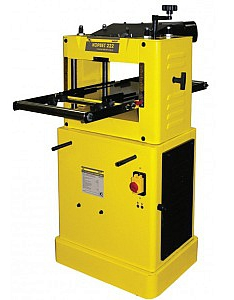 Станок оборудован двухскоростным механизмом подачи, валы имеют резиновое покрытие. Регулировка высоты строгания производится вращение рукоятки сверху, настройку облегчают измерительная миллиметровая шкала и револьверный упор с набором типовых значений толщин пиломатериалов. Предусмотрен измерительный индикатор с щупом для определения глубины съема древесины при строгании заготовки в установленный размер. Сверху корпуса ролики для обратной подачи заготовок.