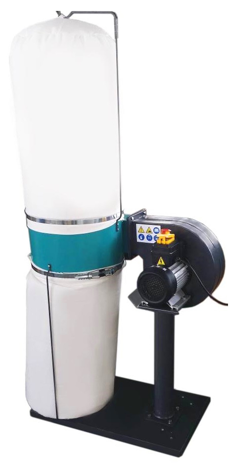 Патрубок диаметром 100 мм хорошо справляется с крупной стружкой от фуговальных и рейсмусовых станков, не говоря уже об опилках. Мешок-фильтр ёмкостью 55 литров позволяет не слишком часто отвлекаться на его очистку.