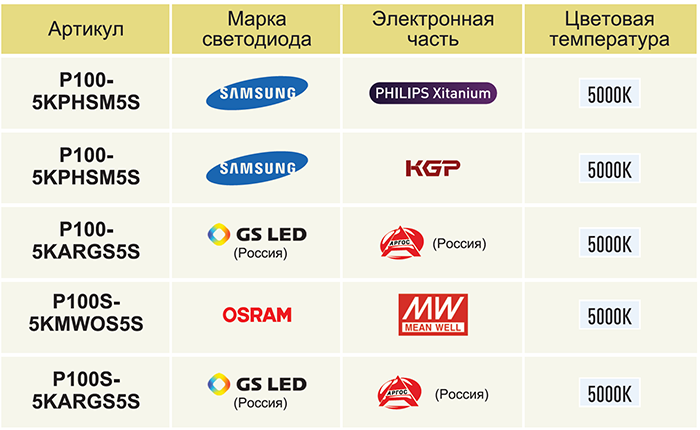 - Светодиоды Samsung; (обратите внимание на модель светильника)